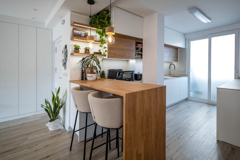 Para esta vivienda en Murcia, realizamos un proyecto de reforma integral, cambiando por completo los ambientes, creando espacios más diáfanos y adaptando la vivienda al máximo a las necesidades de la familia que vive en ella.